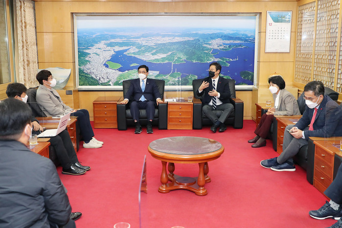 허성무 시장은 “장관님 방문을 환영하며, 오늘 분명한 메시지에 감사하다”며 “지역특화형 문화시설 용역을 시작으로 잘 진행 시켜 마산해양신도시에 구겐하임을 뛰어넘는 훌륭한 국립 미술관이 세워질 수 있도록 하겠다”고 말했다.