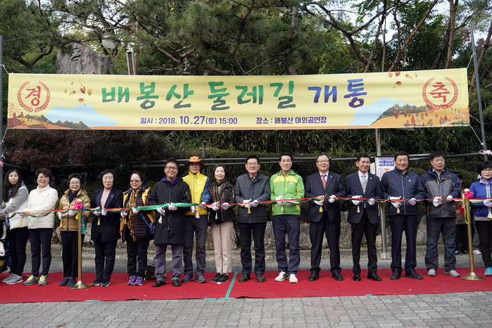 이어 참석자 모두가 배봉산 4.5km 둘레순환길을 코스를 걸으며 둘레길 개통을 기념하는 시간을 가졌다.
