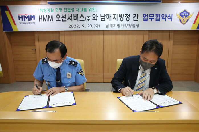 [로컬세계 부산=맹화찬 기자]남해지방해양경찰청은 20일 ㈜HMM 오션서비스와 양 기관 간 현장전문성 향상을 위한 업무협약을 체결했다고 밝혔다.