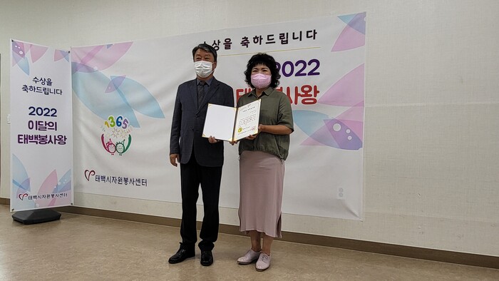 한편 태백시자원봉사센터는 매월 활동 실적이 가장 우수한 봉사자를 선정하고 자원봉사자 활동에 대한 다양한 인정과 가치 및 문화확산을 위해 태백 봉사왕을 선정하고 월 1회 시상하고 있다.