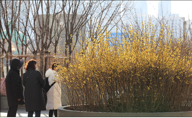 [로컬세계 이명호 기자]녹색보행로 서울로 7017에서 추운 겨울을 이겨낸 식물들이 경쟁하듯 꽃망울을 터트리며 서울의 봄을 느끼게 해주고 있다.