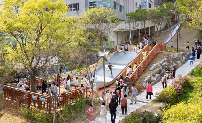 이날 행사에는 관계자 및 지역주민 약 300여명이 참석하여 긴미끄럼틀 쌈지공원 리모델링 과정 보고, 보물찾기, 먹거리 나눔, 긴미끄럼틀 타기 인증 등 다양한 행사를 즐겼다.
