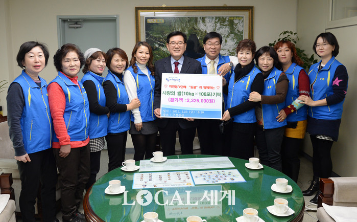[로컬세계 전승원 기자] 23일 동대문구 관내 봉사단체인 ‘등불’ 회원 10여명은 유덕열 구청장을 찾아 저소득층에게 전달할 사랑의 쌀을 기탁했다.