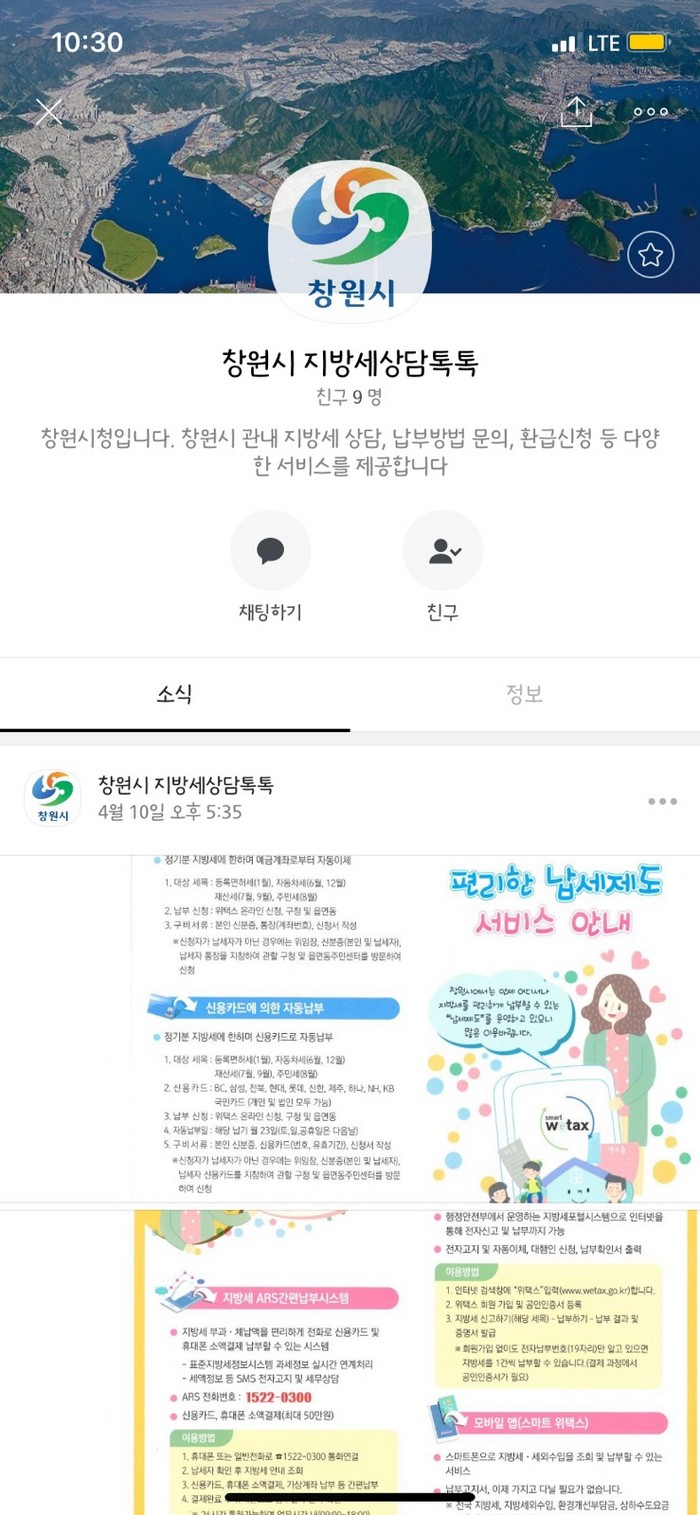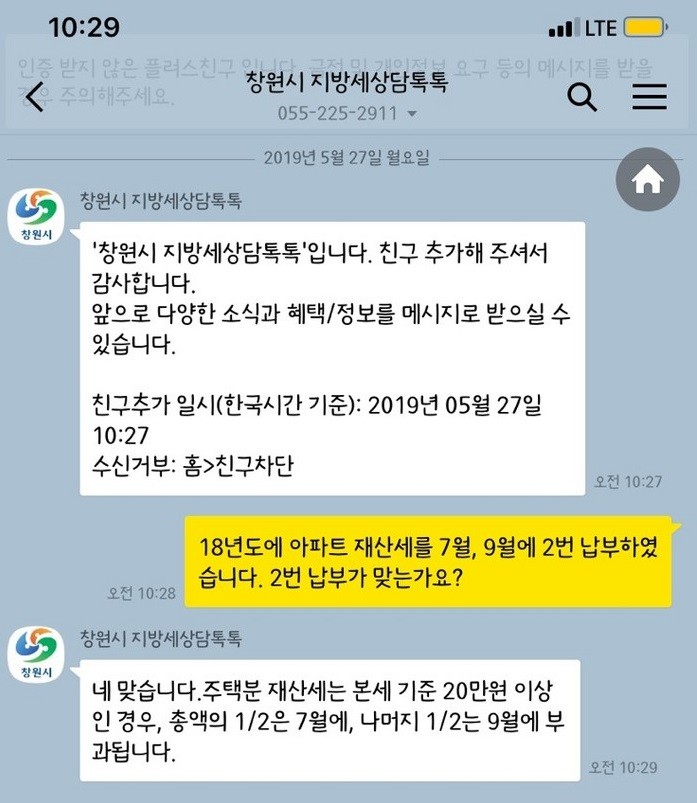 이번 카카오톡을 통한 지방세 상담은 창원시민이라면 누구나 이용할 수 있다. 카카오톡 검색창에 ‘창원시 지방세상담톡톡’를 검색하고 플러스친구 추가 후 채팅을 시작하면 된다.