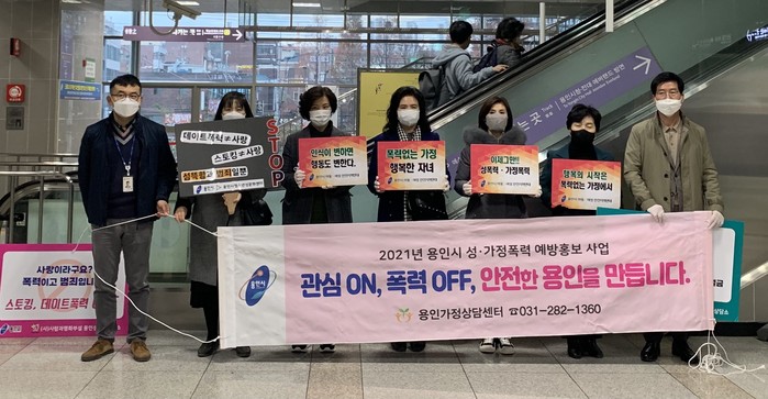 [로컬세계 김병민 기자]경기 용인시는 26일 기흥역 일대에서 성폭력·가정폭력을 추방하기 위해 민·관 합동 캠페인을 벌였다.