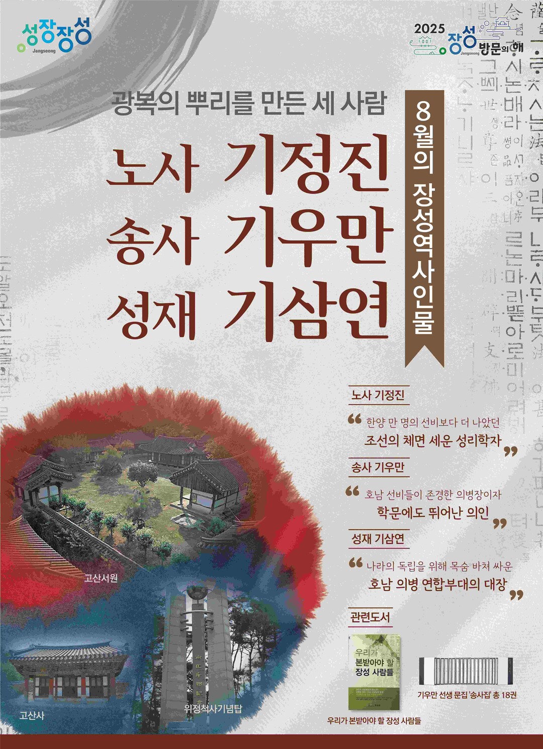 [로컬세계 = 이남규 기자] 전남 장성군이 광복 80주년을 맞은 8월, ‘이달의 역사 인물’로 노사 기정진, 송사 기우만, 성재 기삼연 선생을 선정했다.