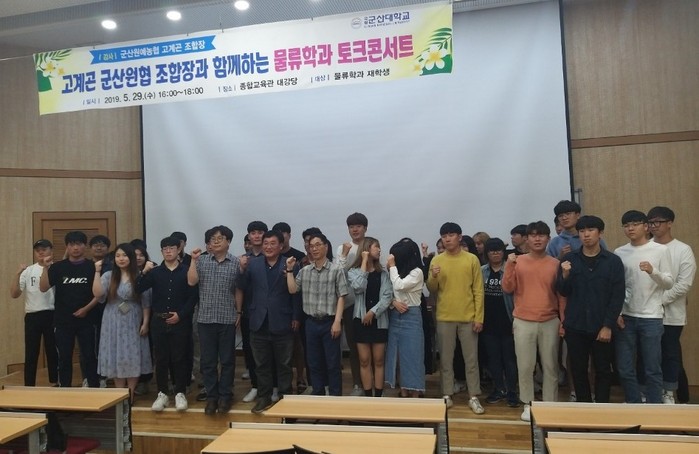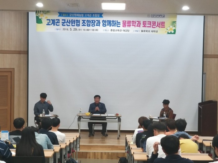 토크콘서트에는 군산대학교 물류학과 교수진을 비롯해 군산원예농협에서 현장실습 중인 물류학과 13학번 진기종, 14학번 김동현 학생 등 50여 명의 학생들이 참석했다.