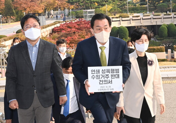 면담을 마친 이 시장과 국회의원들은 “연쇄성폭행범의 출소를 앞두고 수원시민들께서 극도로 불안해하고 있다”며 “재범 방지 장치 없이 연쇄성폭행범이 주민 공동체로 들어와서는 안 된다”고 강조했다. 이어 “연쇄성폭행범의 출소 날짜와 출소 후 거주 장소를 알려주지 않는 법무부의 태도에 화가 난다”고 말했다.