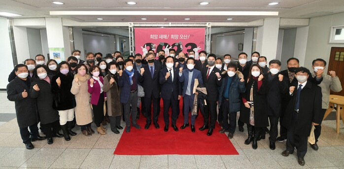 시무식은 이권재 오산시장을 비롯해 전 직원, 오산시를 이끌어가는 오피니언리더 60여 명이 참석한 가운데 오산시 여성합창단의 공연을 시작으로 국민의례, 신년사 낭독, 1일 자로 취임한 강현도 부시장 취임식 순으로 진행됐다.