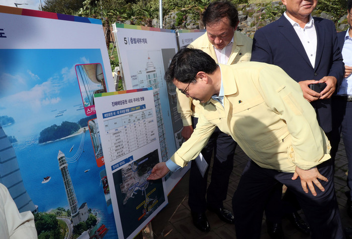 이날 허 시장은 주요시책 사업으로 추진 중인 짚트랙 99타워, 명동 거점형 마리나항만, 우도 해변 친수공간 조성 등의 현장을 차례로 둘러보고 추진상황을 점검했다.