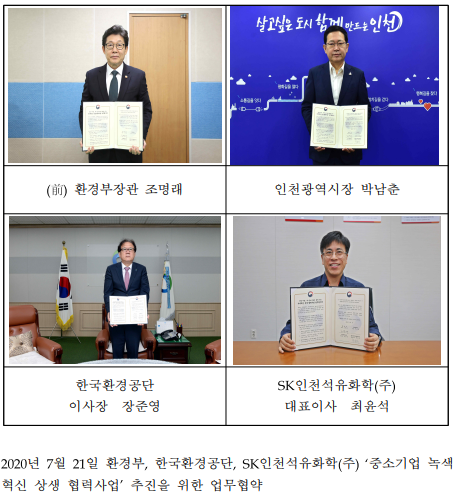 시는 지난 해 7월 환경부, 한국환경공단, SK인천석유화학(주) 등과 지역 내 환경문제 해결 및 지역 맞춤형 녹색산업 육성을 위한 업무협약을 체결했다.