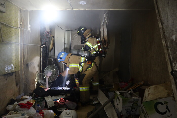 화재는 미상의 원인에 의해 생활용 쓰레기에 착화되어 화재가 발생한 것으로 추정하며, 27일 유관기관과 합동감식을 시행할 예정이다.