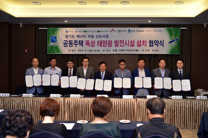 한편 경기도와 안산시 및 시공 아파트는 양해각서 체결 후 9월초까지 단지별 계약체결 및 공사를 착공해서 11월 중순 까지 완료할 예정이며 향후 공동주택 옥상 태양광설치사업을 안산시 전역으로 확대 추진해 경기도와 안산시가 ‘지속가능한 친환경 에너지 자립 도시’로 조성하는 기반을 마련하게 된다.