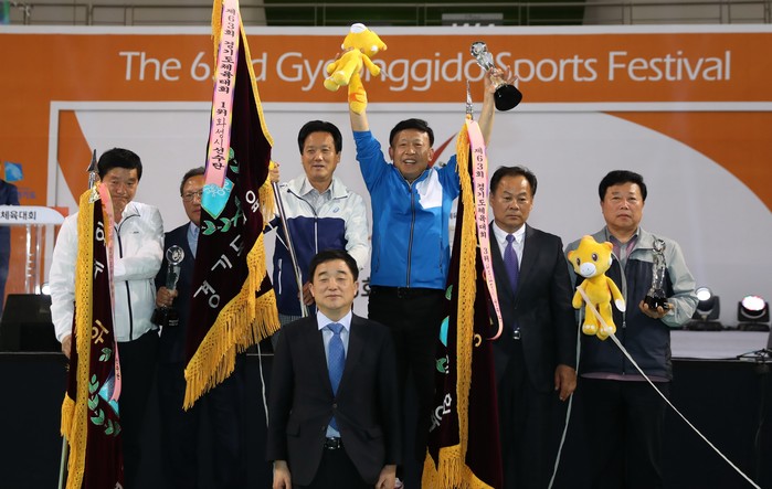| ▲화성시가 종합우승으로 시상식에서 우승기와 트로피를 전달 받았다. |