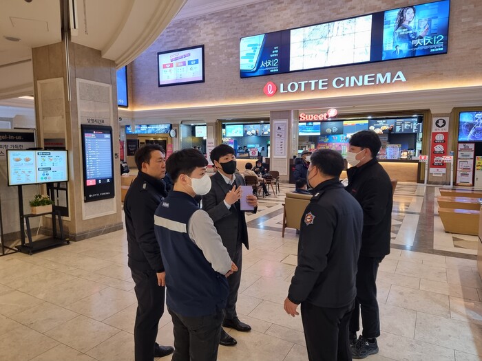 ▲부산중부소방서는 관내 화재취약대상인 롯데시네마 광복점 등 5개의 영화관을 방문해 관계인 자율안전점검 결과에 대한 컨설팅을 실시했다. 중부소방서 제공 |