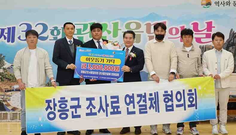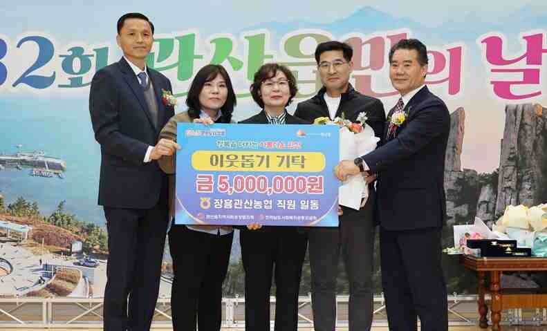 지난 9일 장흥군 '제32회 관산읍민의 날' 행사에서 아우름 영농조합법인의 김현민 대표 500만원, 장흥관산농협 임직원 500만원, 장흥군조사료협의회 관산읍연결체 회원들이 300만 원을 기탁하며 지역 상생의 가치를 실현했다.