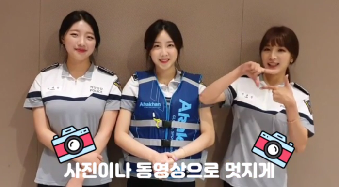 | ▲남해해경청 롯데자이언츠 홍보대사 3인방이 25일까지 실시되는 구명족끼 착용 인증샷 SNS 이벤트를 홍보하고 있다. |