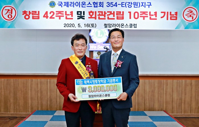 한편 이날 기념식에서는 태백시 지역 인재 육성을 위한 향토장학금 (300만원)이 기탁돼 태백미래인재를 위한 기부 봉사에 동참했다.