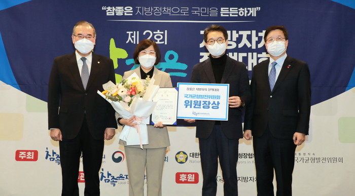 [로컬세계 김병민 기자]경기 안성시가 21일 열린 ‘2021년 참좋은 지방자치 정책대회’ 시상식에서 국가균형발전위원장상을 수상했다.