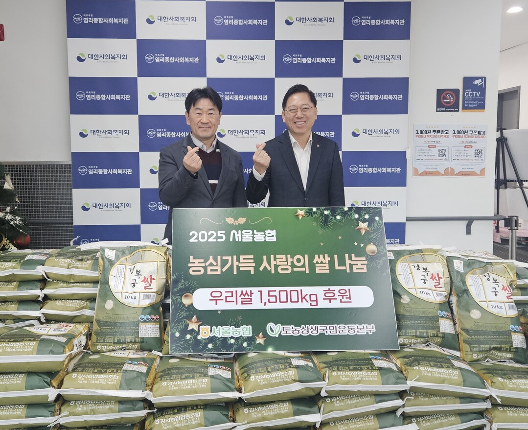 서울농협(본부장 맹석인)은 17일 연말연시를 맞아 지역사회 취약계층의 따뜻한 겨울나기를 응원하고 우리 쌀 소비를 촉진하기 위한 '농심가득 사랑의 쌀 나눔행사'를 실시했다.