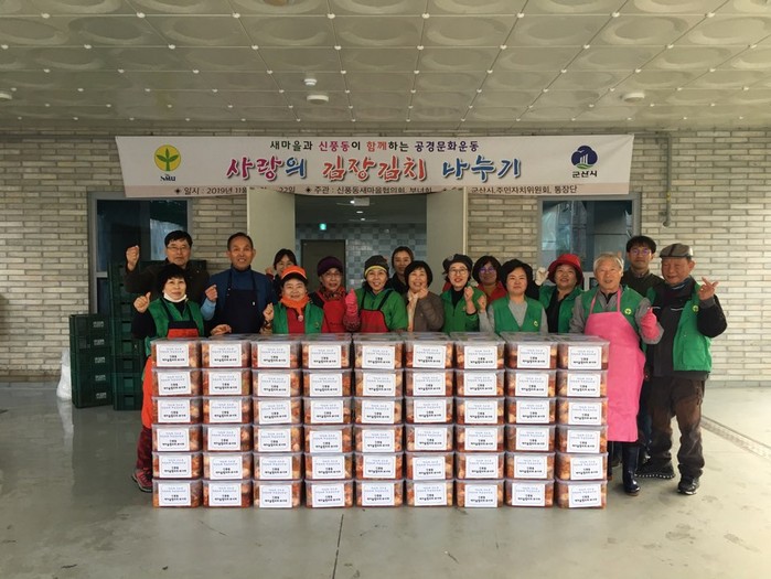 신풍동에서는 (사)고향을 생각하는 주부들의 모임(군산회장 송미숙)이 지난달 20일, 신풍동주민센터와 함께 저소득가구 2세대에 방문해 김장 김치와 백미 등을 전달했다 또 신풍동새마을협의회(회장 이형길)와 새마을부녀회(회장 홍성희)가 지난달 22일 '사랑의 김장김치 나누기' 사업을 추진했다.