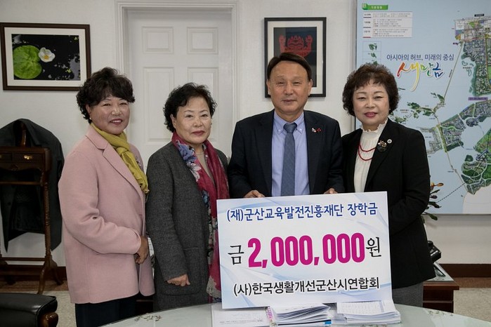 (사)한국생활개선군산시연합회(회장임순옥)은 영농폐자재를 모은 수익금으로 장학금을 기탁했으며 (주)롯데주류는 군산시 교육발전을 위해 써달라며 장학금 1500만원을 기탁해 훈훈함을 더했다.