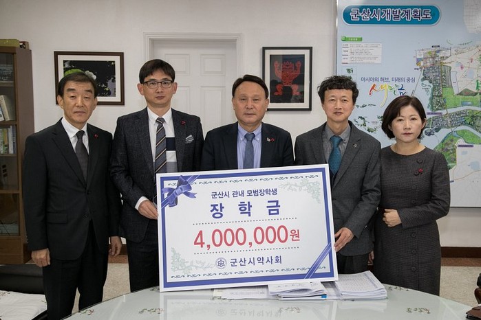 지난달 19일 군산시 약사회(회장 김재성)은 어려운 가정환경 속에서도 모범적으로 학교생활을 하는 학생 13명에게 장학금을 지원했다. 또 같은 날 군산시장애인체육회(회장 강임준)도 장애를 가진 어려운 세대를 위해 써 달라며 500만원을 기탁했다.