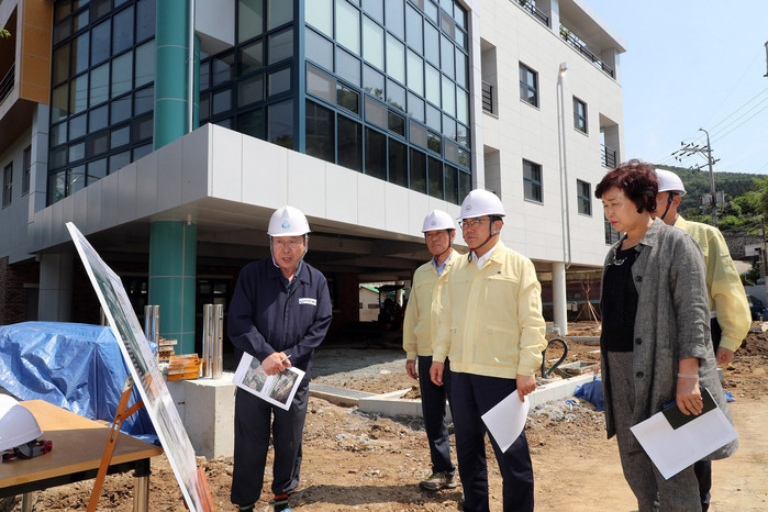 허 시장은 지하층부터 옥상정원까지 건축물의 곳곳을 둘러보며 각 실의 효율적인 배치와 안전 저해요소를 점검했으며, 어르신들이 사용할 시설인 만큼 건축물의 안전성과 섬세하고 완벽한 마무리를 당부했다.