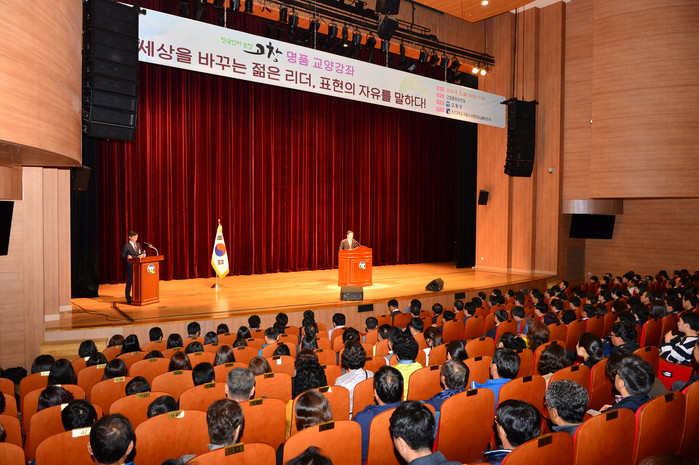 ▲박우정 고창군수가 2일 ‘비전다짐의 날 ’행사에서 전 직원을 대상으로 강의하고 있다.(고창군 제공) |