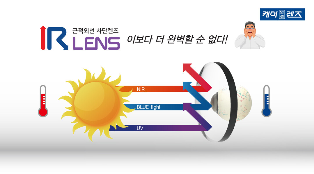 안경렌즈 종합브랜드사 케미렌즈는 야외에서는 자외선과 근적외선을 막고 실내에서는 블루라이트까지 차단하는 ‘케미 IR 렌즈’를 선보이고 있다.