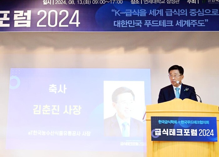 ▲2024 급식테크포럼에서 축사하는 김춘진 사장 |