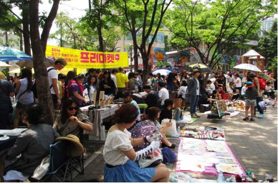 올해로 개장 14년째를 맞는 ‘홍대앞 예술시장 프리마켓’은 매회 110여 명의 참가자들이 창작 작품을 자유롭게 전시·판매하는 자생예술시장이다. 1회 평균 관람객 수가 1만5000여 명에 달하는 등 홍대지역의 대표적 문화행사이다.