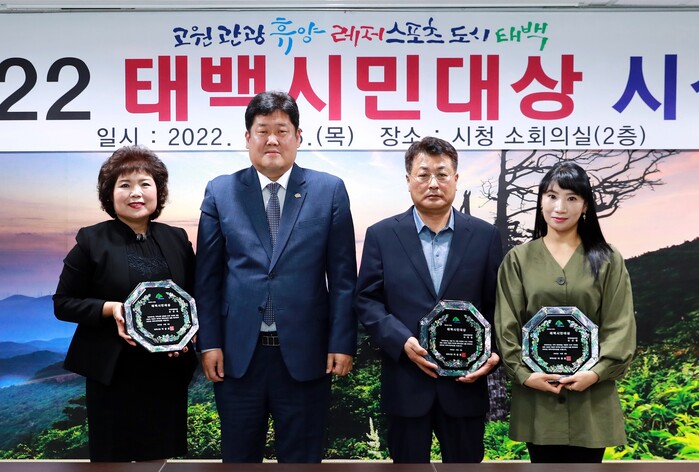 이상호 태백시장은 “태백시와 시민을 위해 헌신해 온 수상자들에게 축하와 감사를 드린다”며 “앞으로도 지역발전과 이웃사랑을 실천하신 분이 영예로운 시민대상을 수상할 수 있도록 제도 운영에 최선을 다하겠다”고 말했다.
