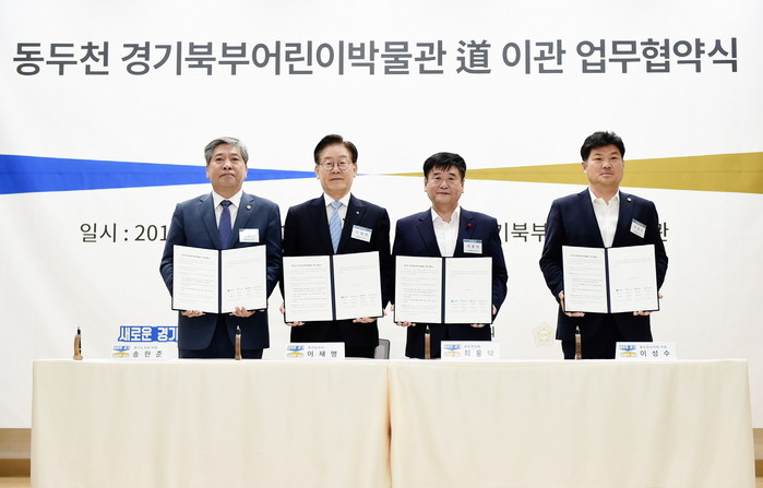 이재명 경기도지사는 최용덕 동두천시장, 송한준 경기도의회 의장, 이성수 동두천시의회 의장과 함께 13일 동두천 경기북부어린이박물관에서 이런 내용을 담은 ‘동두천 경기북부어린이박물관 경기도 이관’ 업무협약을 체결했다. 이날 협약식에는 경기도의회 김동철‧유광혁 도의원 등 약 30여명이 함께했다.
