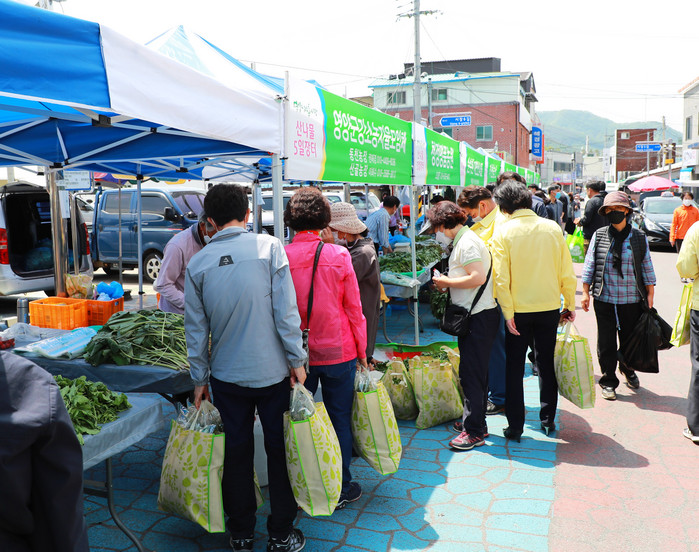 ▲지난 2019년 열린 '제15회 영양산나물축제장'에 마련된 산나물 장터 모습. 영양군 제공 |