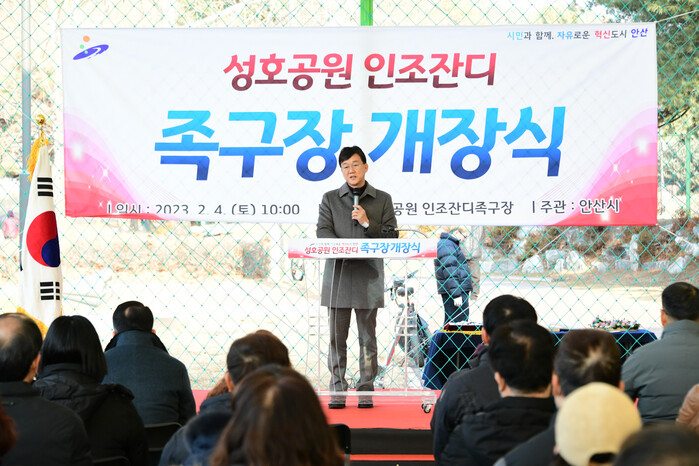 이에 이민근 시장은 “성호공원 인조잔디 족구장 개장을 축하하며, 앞으로 족구 동호인과 시민들에게 활력과 즐거움을 주는 공간으로 활용되길 기대한다. 생활체육 활성화를 위해서도 최선을 다할 것”이라고 화답했다.