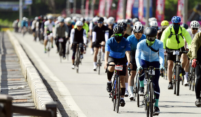 전국 사이클 마니아 5,000명이 참가해 화천 DMZ 랠리 코스 73㎞를 질주했다.(사진=화천군 제공)