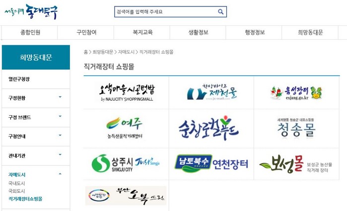 ▲동대문구청 누리집 내 직거래장터 쇼핑몰 화면. |