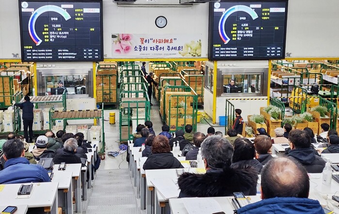 ▲ 화훼사업센터 2024년 새해 첫 장 최대 경매실적 달성.aT 제공 |