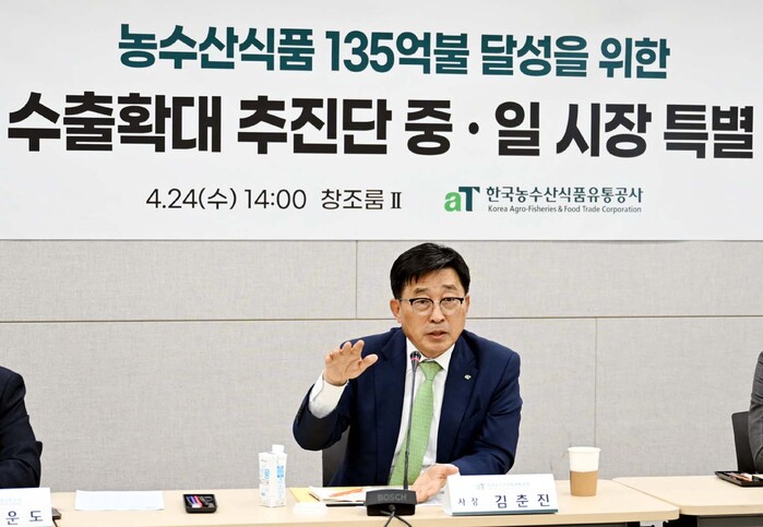 한국농수산식품유통공사(사장 김춘진)는 24일 서울 양재동 aT센터에서 농수산식품 주요 수출국인 중국·일본 주력 수출기업과 간담회를 개최해 지속 가능한 수출 확대 방안을 논의했다.