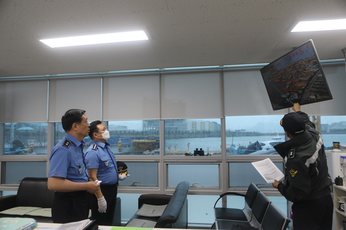 [로컬세계맹화찬기자]부산해양경찰서는 5일 제10호 태풍 ‘하이선’ 북상에 따라 남해지방해양경찰청장(치안감 구자영)이 직접 부산항 일대 및 대교동 물양장 등을 방문해 태풍태세점검 및 취약시설을 집중 점검했다고 밝혔다.