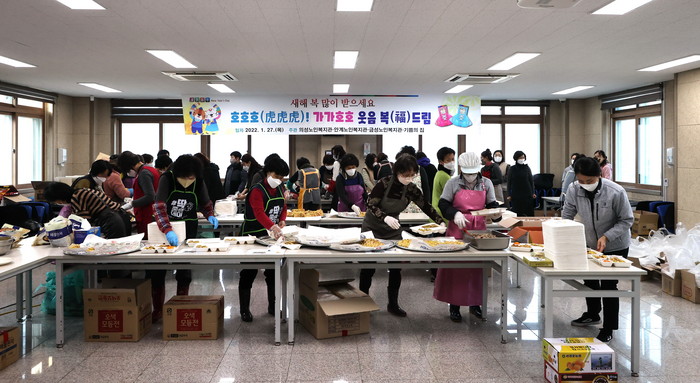 ‘호호호(虎虎虎)! 가가호호 웃음복(福)드림 캠페인’은 노인복지 최일선에서 활동하는 의성·금성·안계노인복지관, 기쁨의집 직원 및 생활관리사들이 설 명절 동안 자녀들이 방문하지 않는 홀몸어르신 1,000가구를 집집마다 방문해 새해 인사와 따뜻한 명절 음식을 전하고, 어르신과 자녀들이 안부 인사를 나눌 수 있도록 돕는다. 통화가 어려운 분들에게는 새해 인사 동영상을 촬영해 보낼 예정이다.