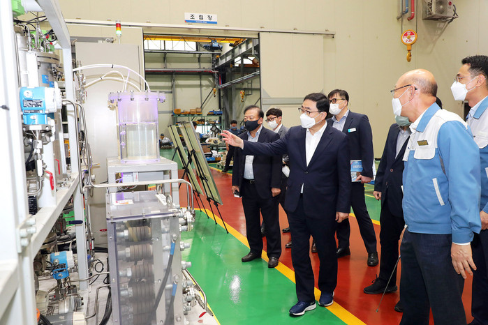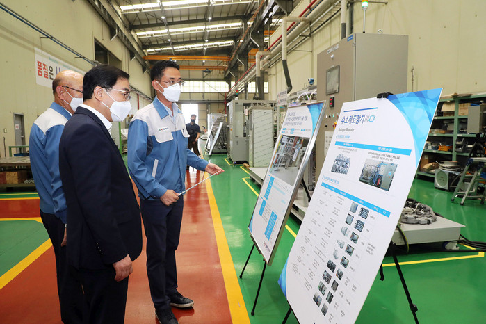[로컬세계 권인진 기자]허성무 창원시장은 11일 정부 수소경제 활성화 및 한국판뉴딜 정책에 발맞춰 수소에너지 원천기술 개발계획에 적극 대응하기 위해 국내 수전해 수소 제조기술 선도기업인 이엠솔루션(주)을 방문했다.