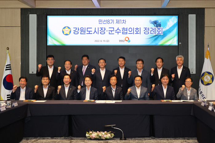 [로컬세계=박상진 기자] 민선 8기 강원도시장·군수협의회가 19일 양양군 설해원 연회장에서 1차 정례회를 열고 이상호 태백시장을 부회장으로 선출했다.