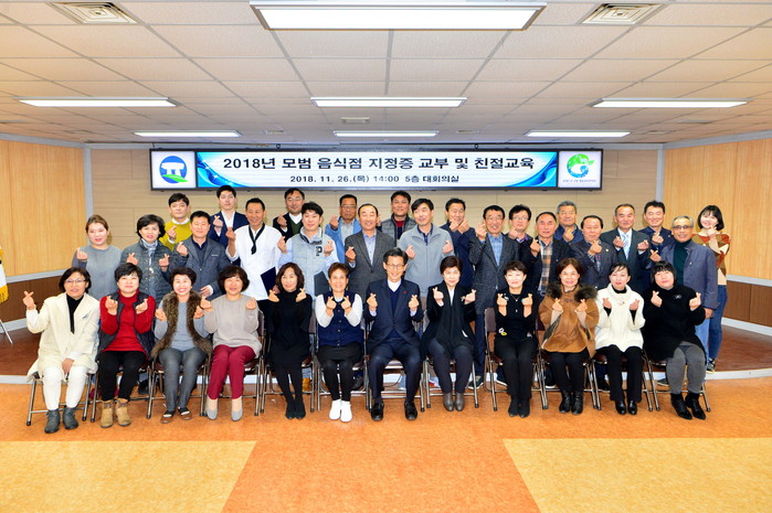 아울러 모범음식점 지정증 교부 후 모범음식점 업주들을 대상으로 깨끗한 복장, 깨끗한 환경, 깨끗한 음식 제공, 환한 미소로 고객들이 안심하고 즐길 수 있는 고객 감동서비스 실천 교육을 실시했다.