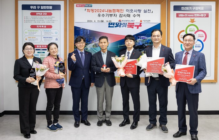 [로컬세계 부산=맹화찬 기자]부산 북구는 희망2024나눔캠페인 이웃사랑 실천 우수 기부자에게 부산사회복지공동모금회 감사패를 수여했다고 15일 밝혔다.