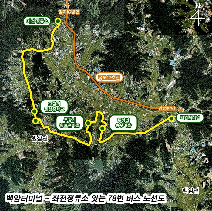 | ▲백암터미널~좌전정류소 잇는 78번 맞춤형 버스 노선 신설. 용인시 제공 |