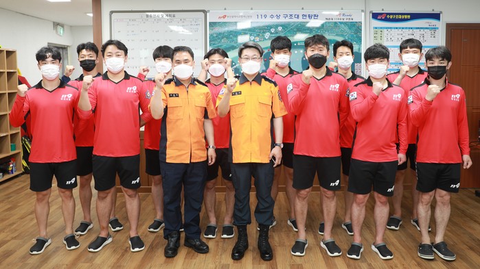 이번 방문은 물놀이 장소 배치 현황, 각종 수난장비 및 안전관리 실태를 점검하고 현장 활동 시 대원들의 안전사고 주의 등 당부와 119수상구조대원들의 노고 격려, 건의 및 애로사항을 청취하고자 마련됐다.