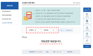 ▲아리수 사이버고객센터 감면대상 여부 조회 화면. |