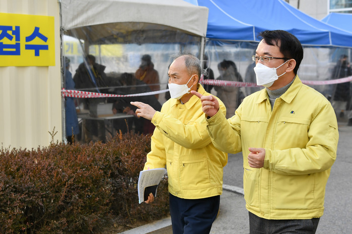 | ▲조청식 시장대행이 선별진료소 운영시스템을 점검하고 있다. |